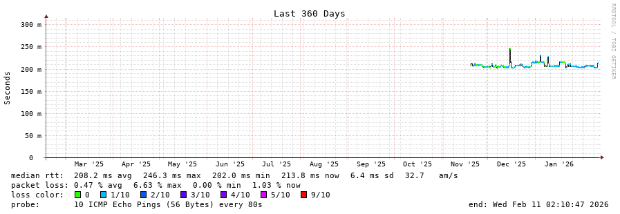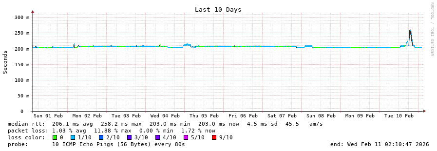 22 > 181.233.26.199 (181.233.26.199) [AS271835] 203.045ms 202.944ms 203.019ms