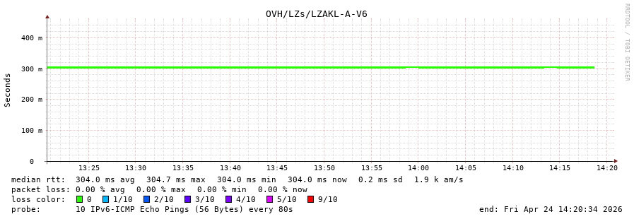 30. Median RTT 0.304 seconds