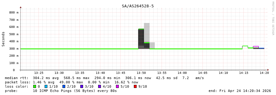 46. Median RTT 0.294 seconds